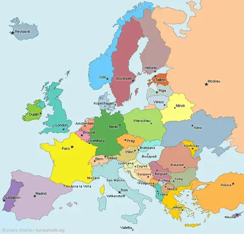 Europakarte: Länder in Europa