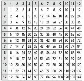 Haiku Learning : 8th Grade Math : Multiplication Table Help Sheet