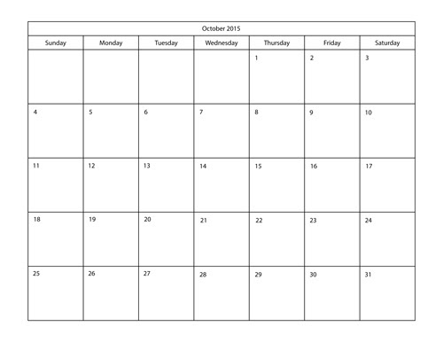 OCTOBER 2015 CALENDAR BLANK | Turex